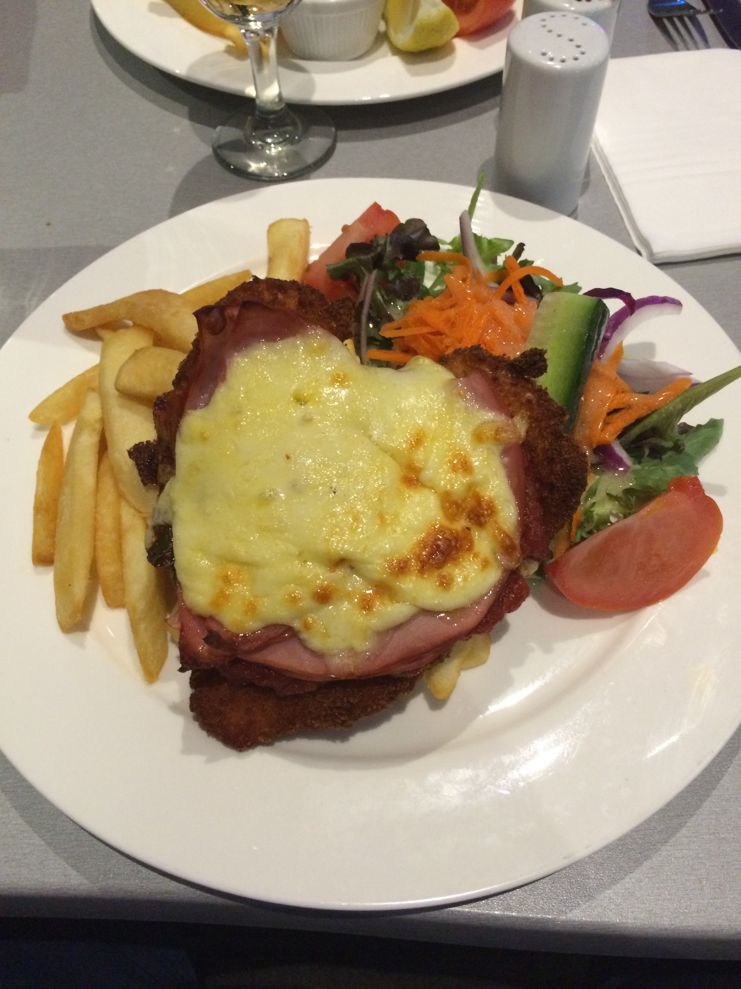Presentation: Probably the largest failing of this meal was the fact that chicken piece covered not only a large portion of the chips but also a portion of the salad. Whilst this did not massively effect the side dishes it was aesthetically not pleasing.